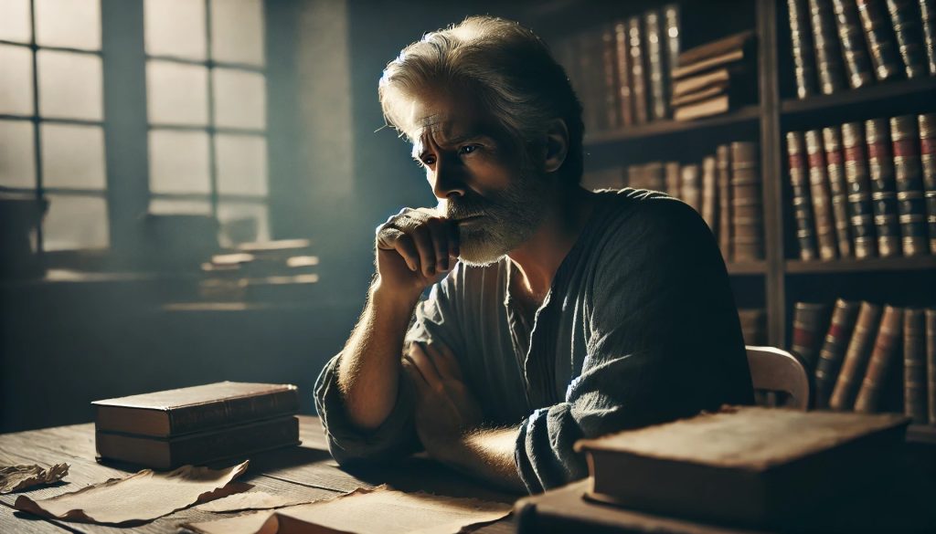 Kirjaston ovi narahti, ja Vuotis astui sisään. “Simo,” hän sanoi lempeästi mutta varovaisesti, “mitä sinä oikein tutkit?”